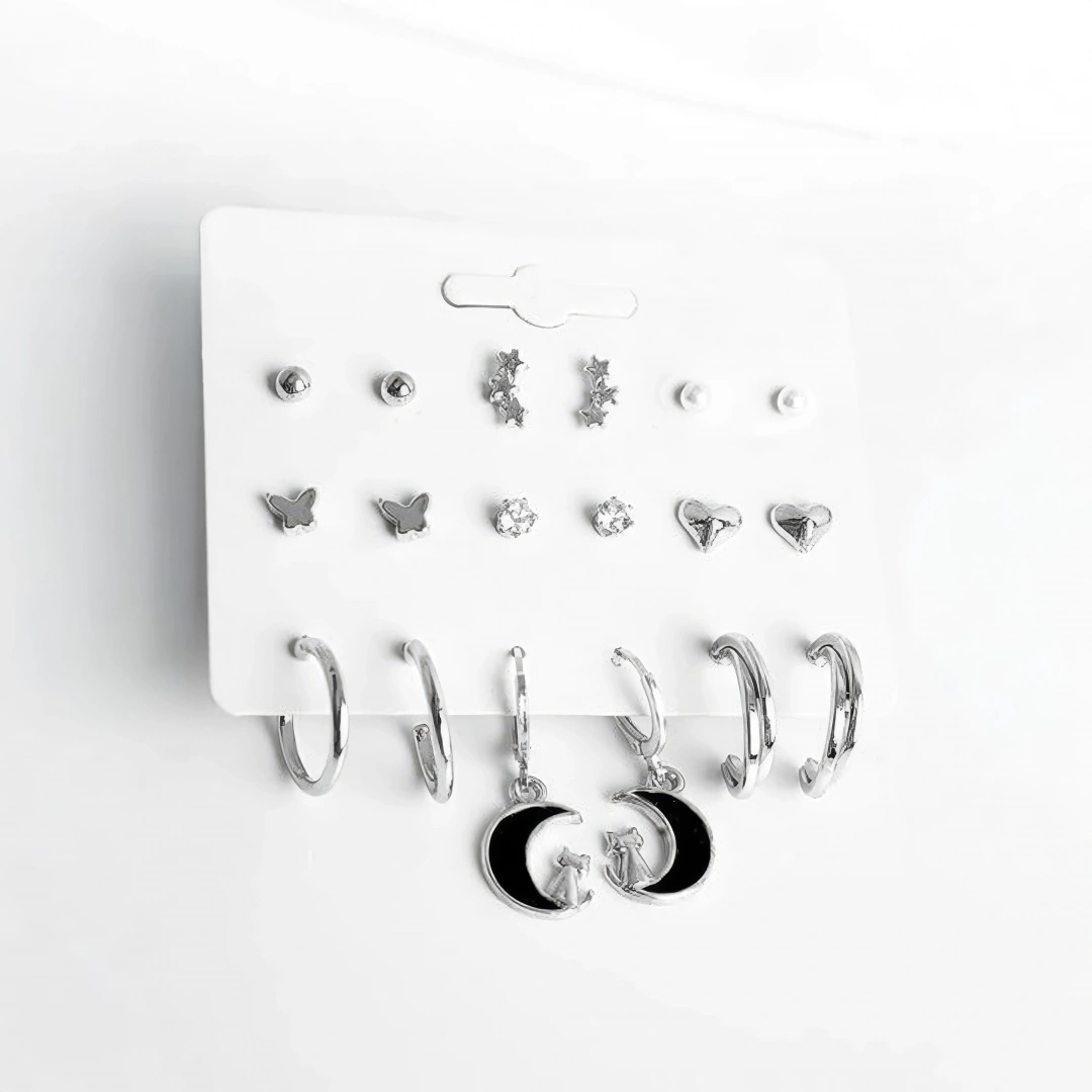 Ay Kedi Kelebek Sıralı Yıldız ve Kalp Tasarımlı İnci Zirkon Halka ve Top Küpeli 9lu Küpe Seti ; Ürün temizliğini pamuklu bir bez ile yapabilirsiniz ; Kimyasal maddelerle teması olmaması dahilinde kararma yapmaz ; Anti Alerjiktir cilt de herhangi bir kızarıklık vb.; olumsuz etki oluşturmaz ; İş günleri 24 saat içinde kargoda ; Sevgiliye alınacak hediye ; Anneye alınacak hediye ; Kızıma alınacak hediye ; Notlu Hediye Paketi ;