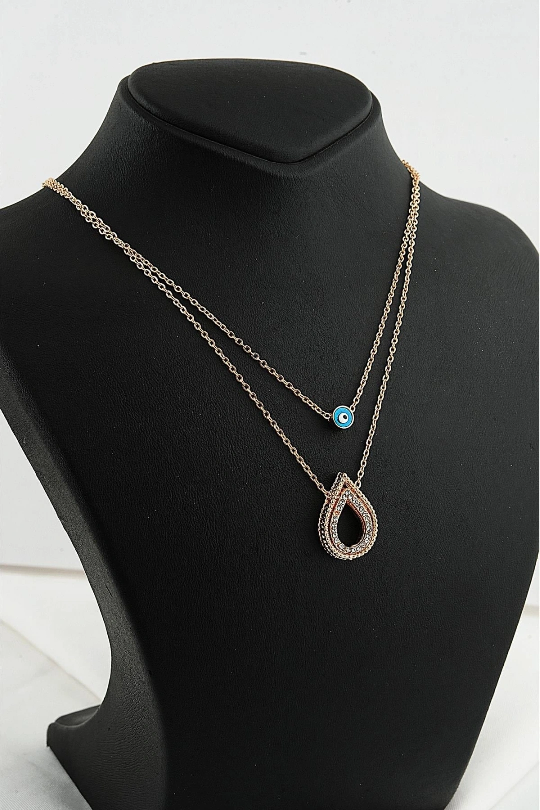 Zarif tasarımıyla göz alıcı bir görünüm sunan bu kolye, gümüş kaplama malzemesiyle uzun süreli kullanım için idealdir; Göz alıcı zirkon taşlarla süslenmiş nazar figürleri, her türlü özel gününüzde şıklığınızı tamamlar; Altın rengi kaplama sayesinde hem modern hem de klasik kombinlerinizle uyum sağlar ve dikkat çekici bir aksesuar oluşturur; 2'li set halinde sunulan bu kolye, hem kendiniz için hem de sevdiklerinize hediye olarak tercih edebileceğiniz mükemmel bir seçenektir;