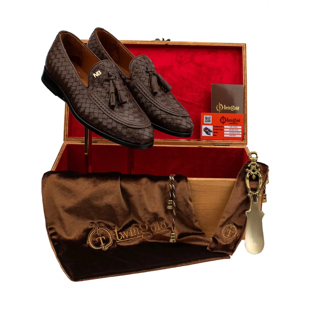 Altın harfli ayakkabılarımız ahşap kutusunda, meşe kalıp, pirinç çekecek, altın sertifikası ve toz torbasıyla birlikte gönderilmektedir.