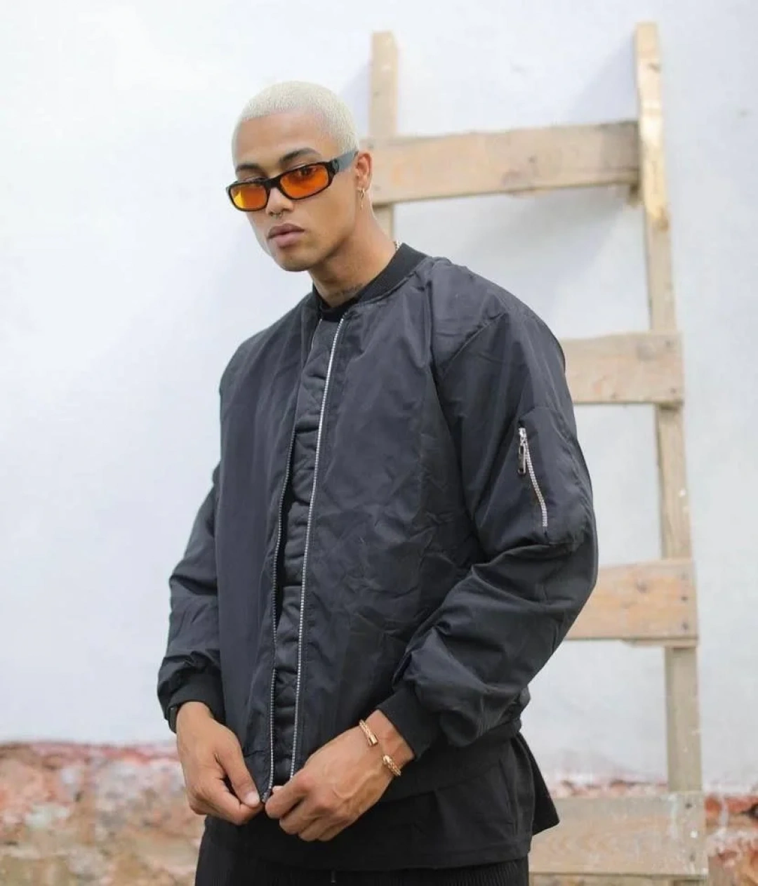 Yıldırım Baskılı Uzun Kol Bomber Ceket - Siyah
