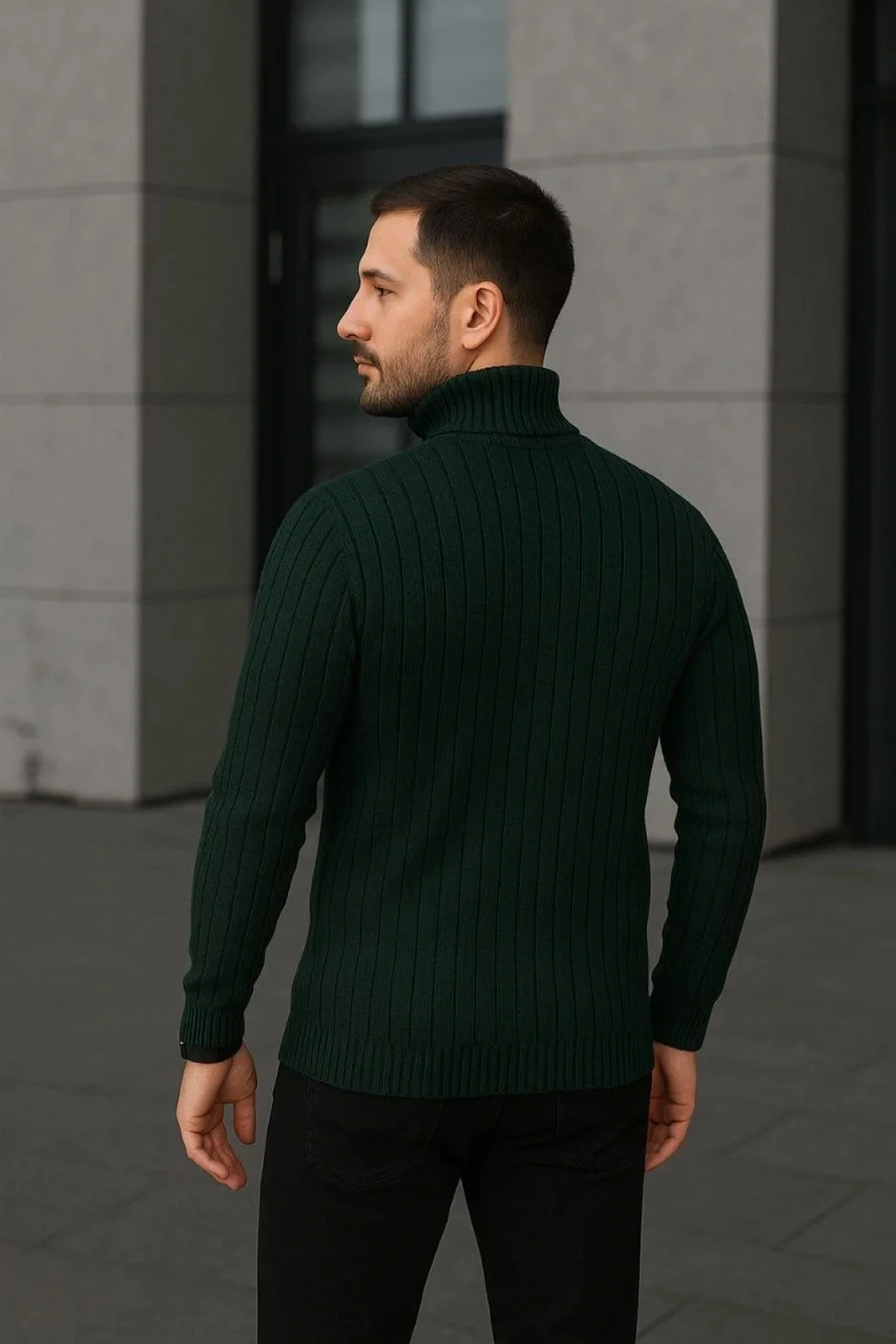 Erkek Fitilli Triko Kazak 3'lÜ Set Bej Haki Siyah Regular Balıkcı Yaka Tam Boğazlı Triko Seti Modeli Kazak