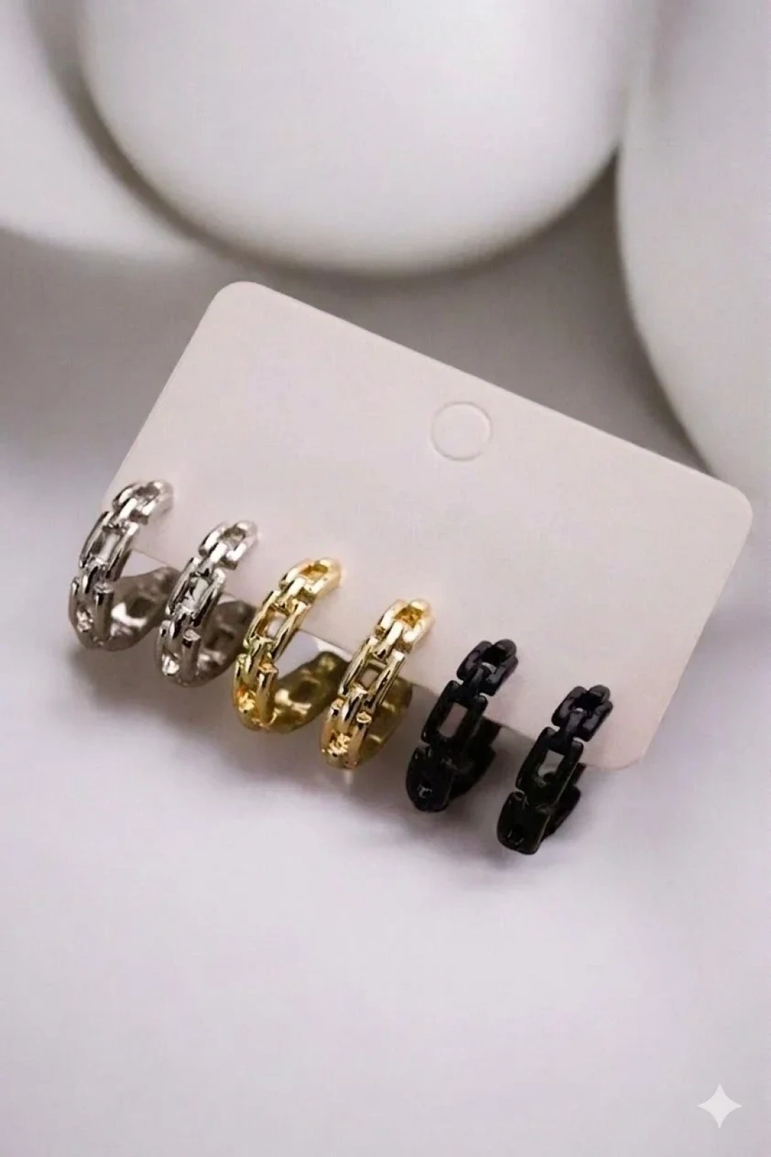 Gold Gümüş ve Siyah Renkleri 3lü Halka Küpe Seti