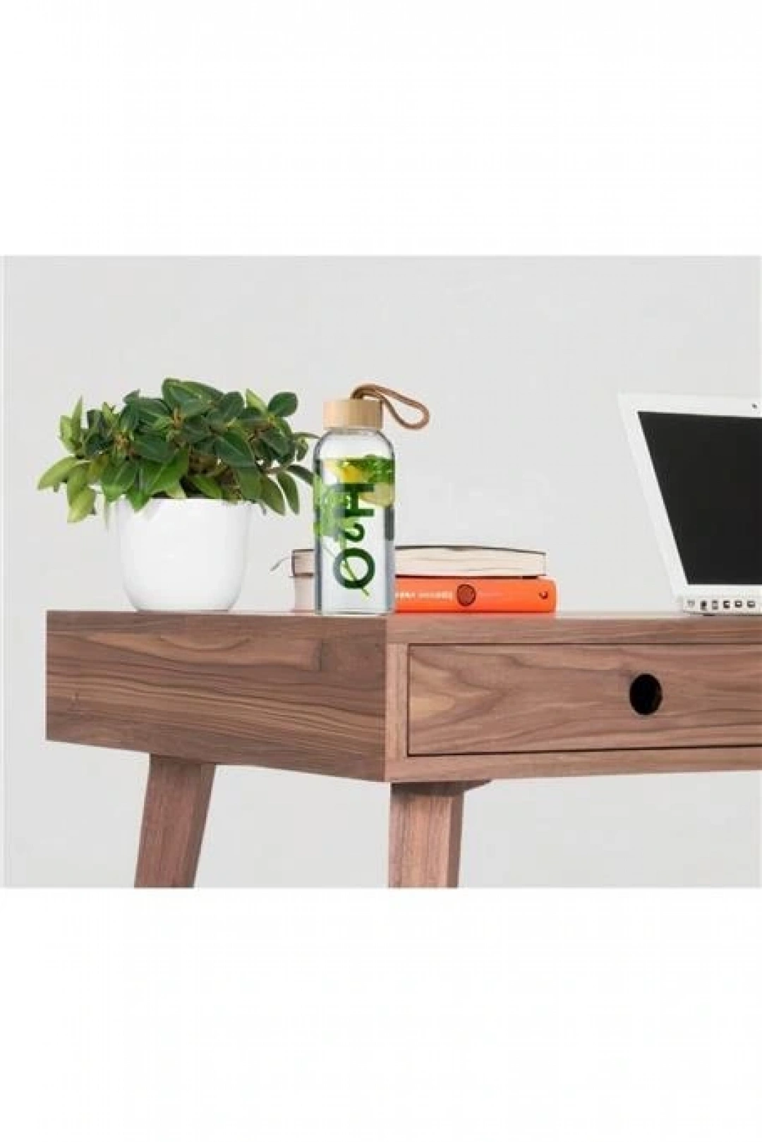 H2o Borosilikat Cam Matara Bambu Vakum Kapaklı Su Şişesi Suluk.600 ml