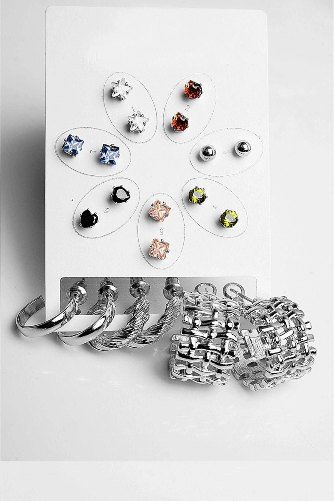 Göz alıcı zirkon taşlarla süslenmiş, her anınıza ışıltı katacak bir aksesuar; Gümüş kaplama malzemesiyle hem şıklığı hem de dayanıklılığı bir arada sunar; Çivi modeli tasarımı, modern ve zarif bir görünüm sağlar;