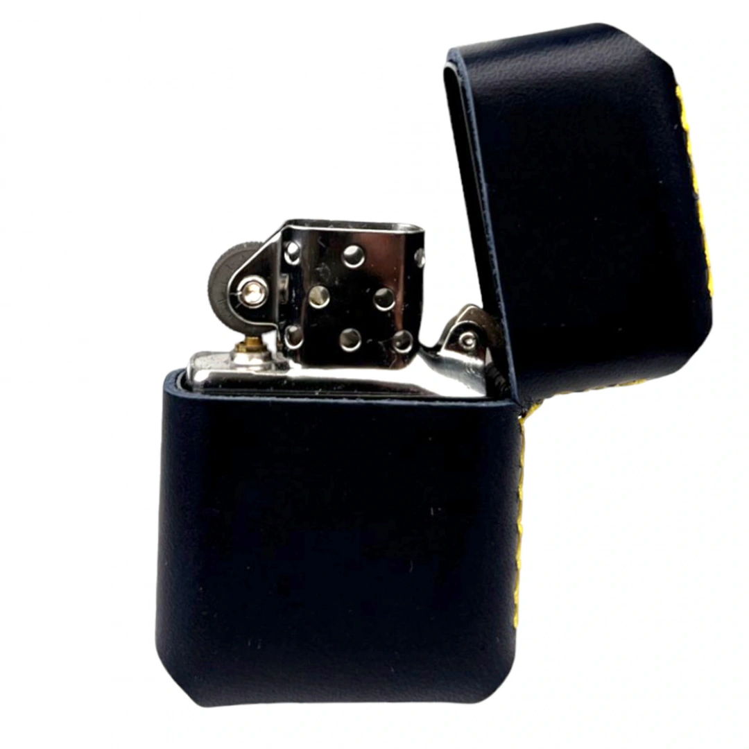 Handmade El Yapımı Hakiki Deri Zippo Modeli Çakmak - AG02001 - Lacivert Sarı