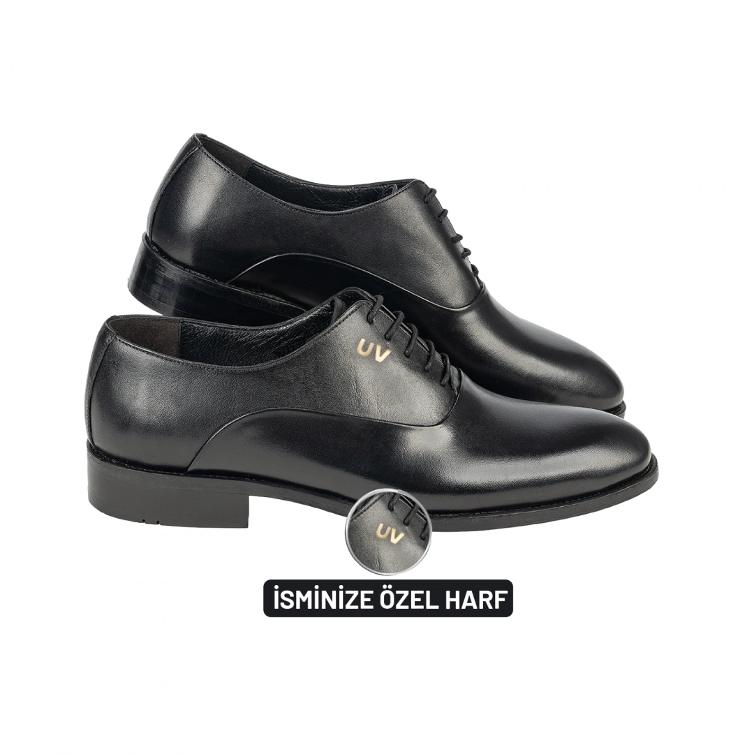 İsim Baş Harfleri ile Kişiselleştirilebilir Hakiki Deri Klasik Tip 2 Siyah Erkek Ayakkabısı