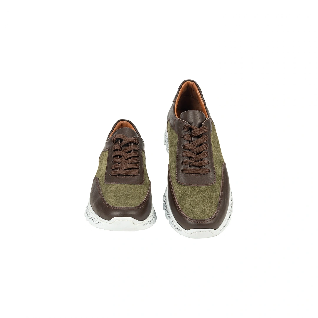 İsim Baş Harfleri ile Kişiselleştirilebilir Hakiki Deri Sneaker Bayan Spor Ayakkabı Haki Kahve