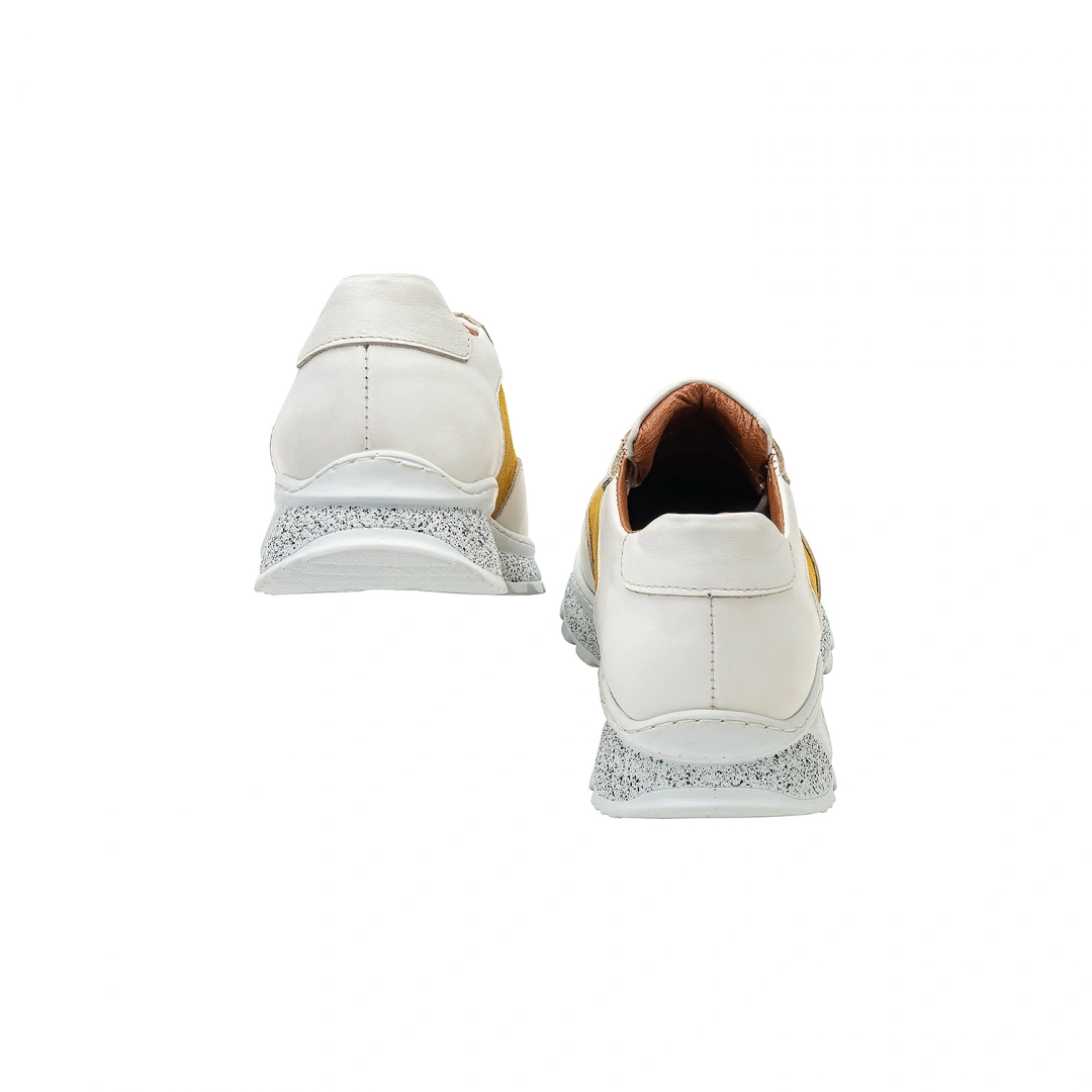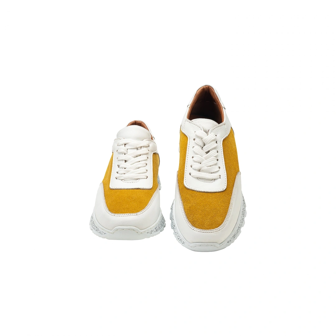 İsim Baş Harfleri ile Kişiselleştirilebilir Hakiki Deri Sneaker Bayan Spor Ayakkabı Hardal Krem