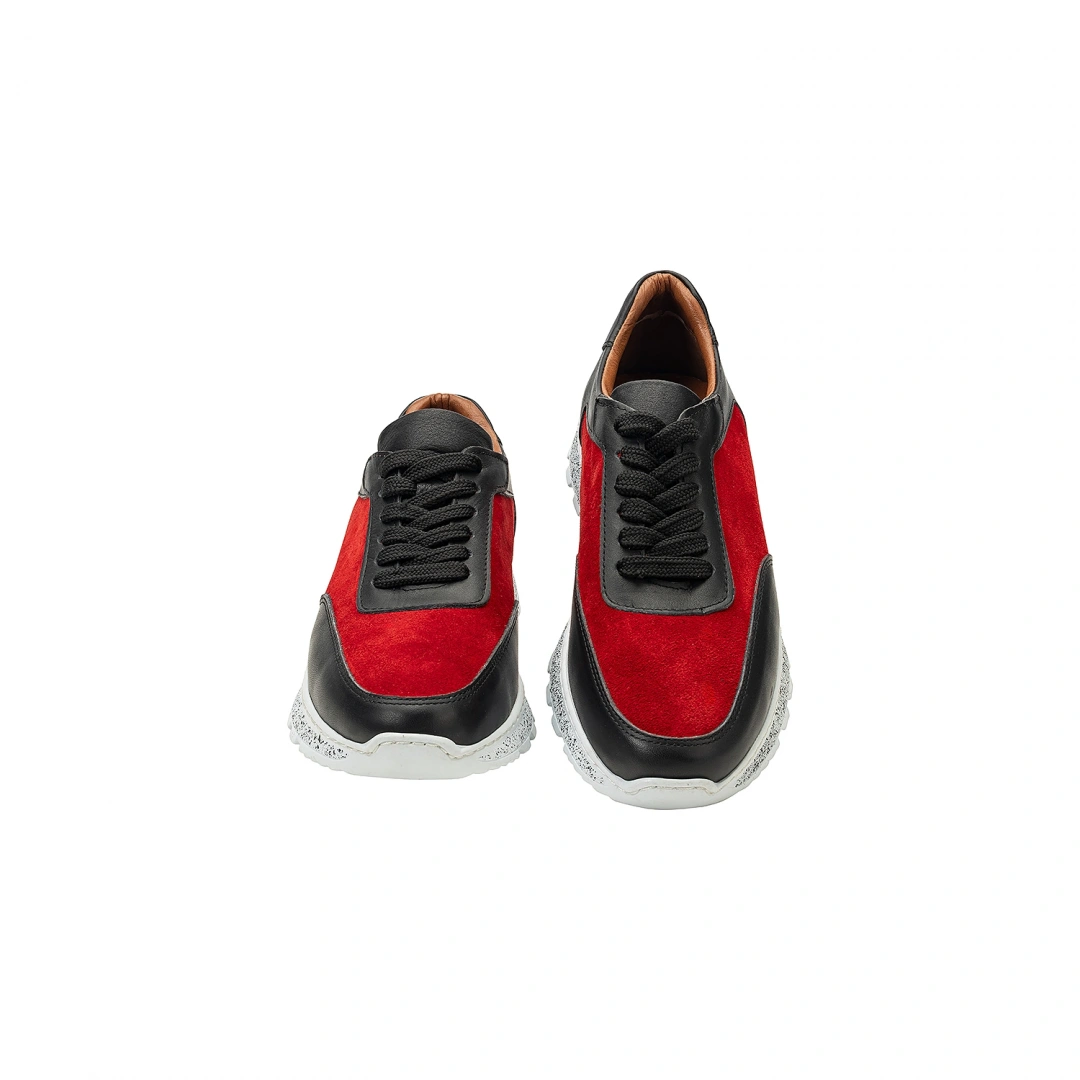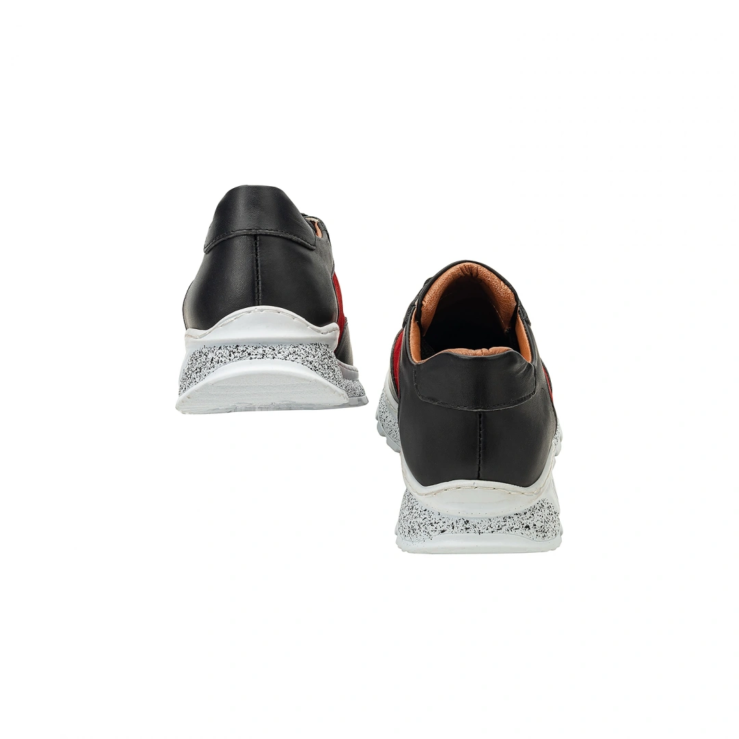İsim Baş Harfleri ile Kişiselleştirilebilir Hakiki Deri Sneaker Bayan Spor Ayakkabı Kırmızı Siyah