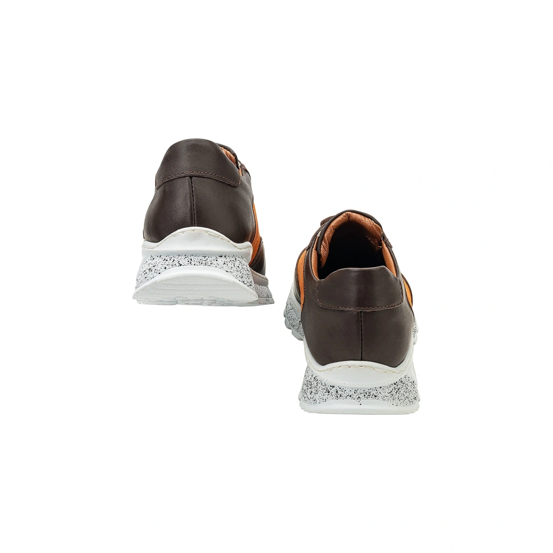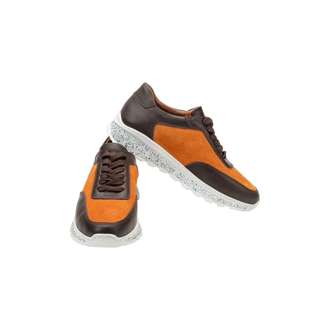 İsim Baş Harfleri ile Kişiselleştirilebilir Hakiki Deri Sneaker Bayan Spor Ayakkabı Turuncu Kahve