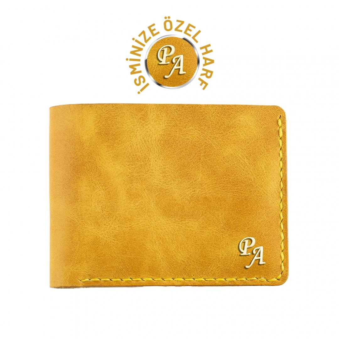 İsme Özel Yatay Klasik Cüzdan - %100 Rainbow Deri - A010001 - Hardal Sarısı