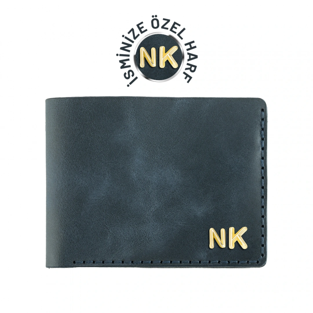 İsme Özel Yatay Klasik Cüzdan - %100 Rainbow Deri - A010001 - Lacivert