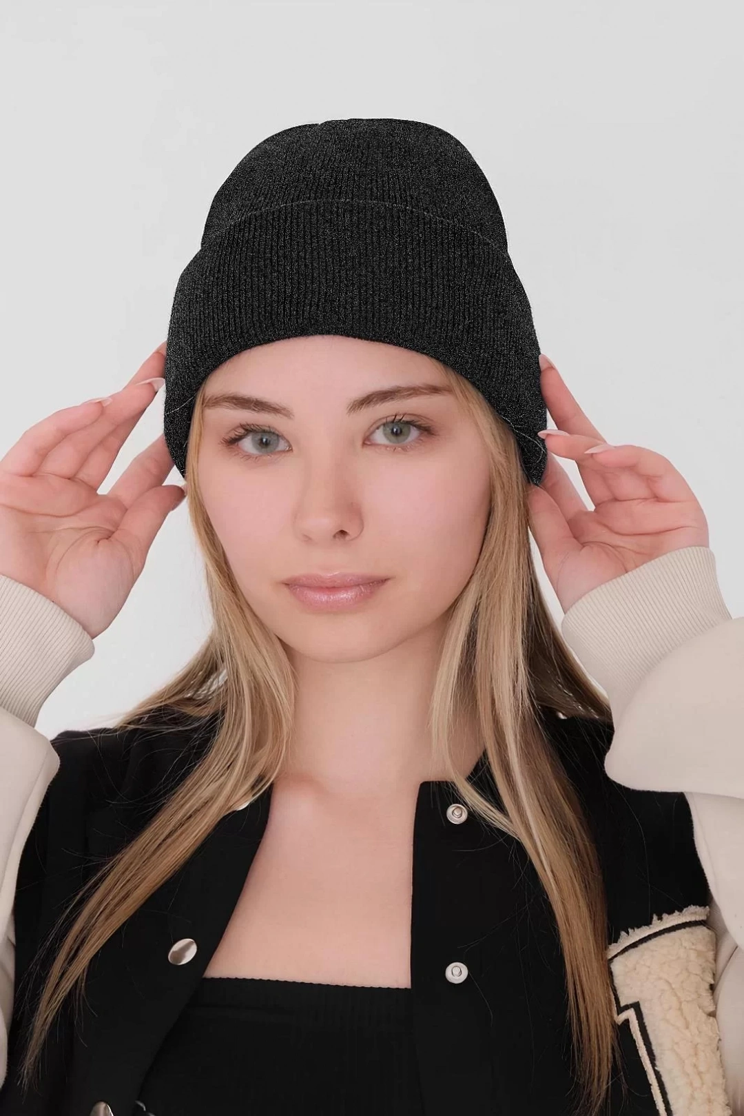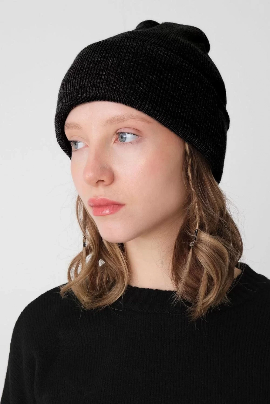 Kadın Katlamalı Basic Bere - Siyah