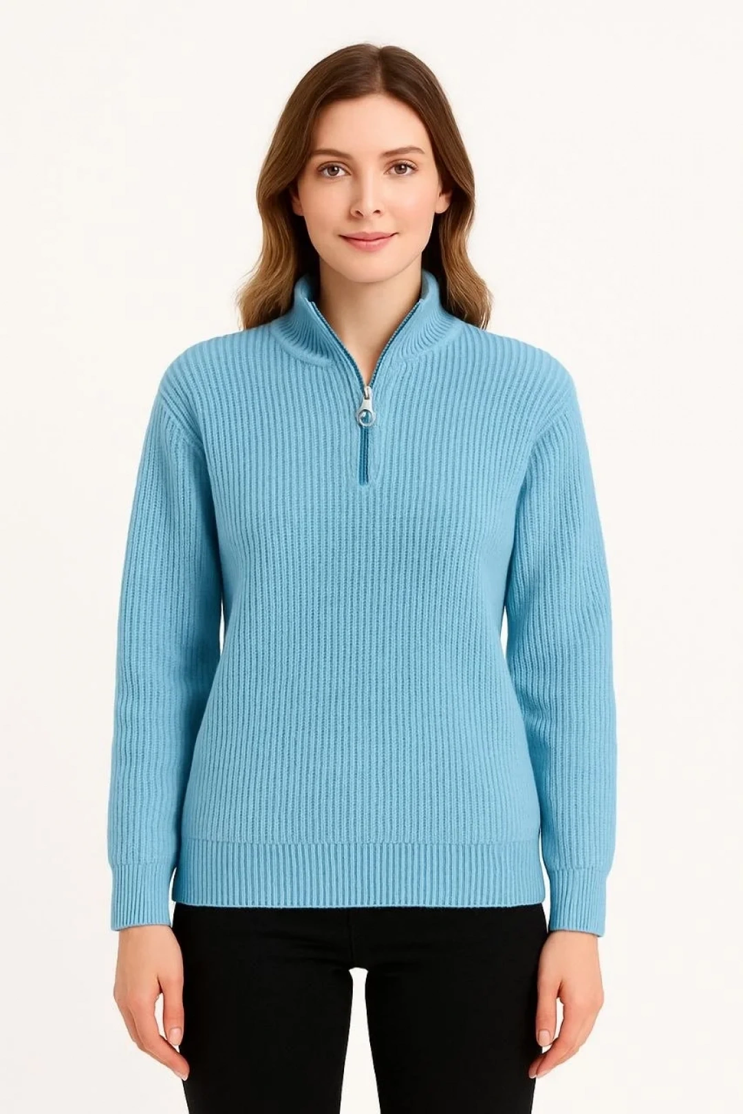Erkek Yarım Fermuarlı Triko Kazak – Selanik Örgü, Dik Yaka, Pamuklu Dokuma, Regular Fit Uzun Kollu Kışlık Model - Mint Yeşili