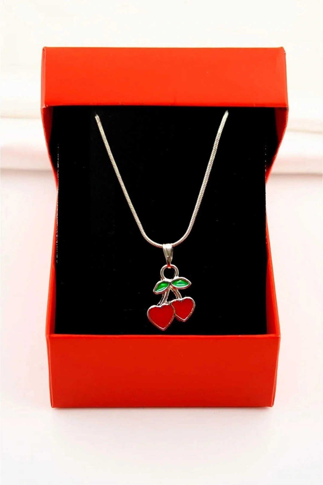 Kalp Kiraz Tasarımlı Özel Yılan Zincirli Gümüş Renkli Kolye ; Ürün temizliğini pamuklu bir bez ile yapabilirsiniz ; Kimyasal maddelerle teması olmaması dahilinde kararma yapmaz ; Anti Alerjiktir cilt de herhangi bir kızarıklık vb. olumsuz etki oluşturmaz ; İş günleri 24 saat içinde kargoda ; Sevgiliye alınacak hediye ; Anneye alınacak hediye ; Kızıma alınacak hediye ; Notlu Hediye Paketi ;