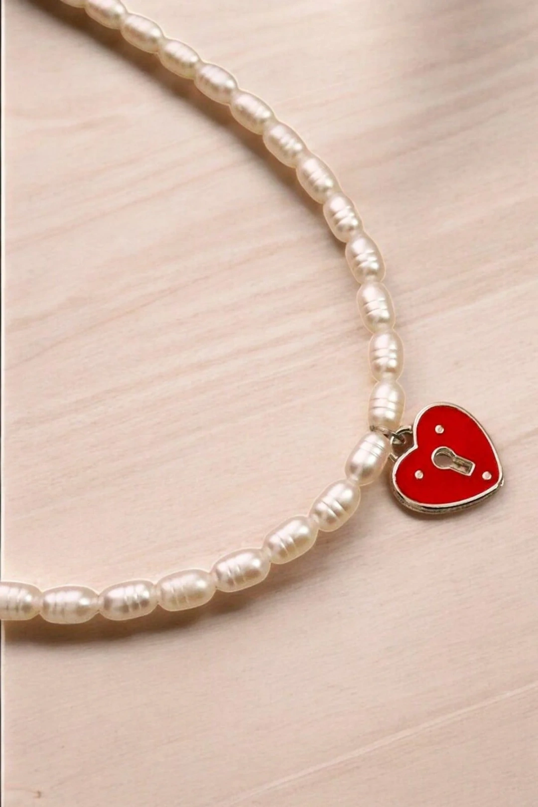 Kalp Tasarımlı İnci ve Zirkon Taşlı Kolye