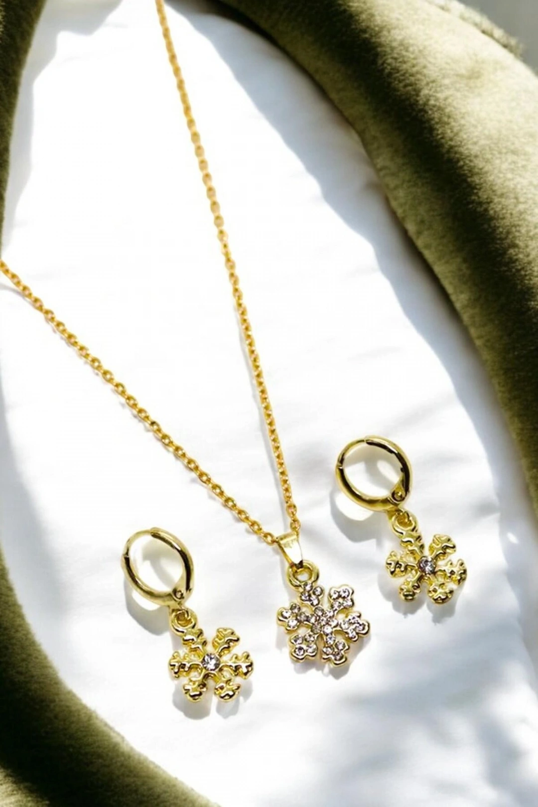Zarif tasarımıyla dikkat çeken bu kolye ve küpe seti, özel günlerinizde şıklığınızı tamamlar; Zirkon kaplama detayları ile göz alıcı bir parlaklık sunar ve her türlü ışık altında dikkat çekici bir görünüm sağlar; Zirkon kaplama kullanımı sayesinde, takılarınızın uzun süreli kullanım için dayanıklılığını artırır ve kararmaya karşı koruma sağlar; Kolye ve küpe seti, kar tanesi tasarımlarıyla modern ve estetik bir görünüm sunar; her türlü kıyafetle kolayca uyum sağlar; Zirkon kaplama materyali, takıların hem şık hem de kaliteli olmasını garanti eder; böylece özel günlerinizde kendinizi özel hissetmenizi sağlar;