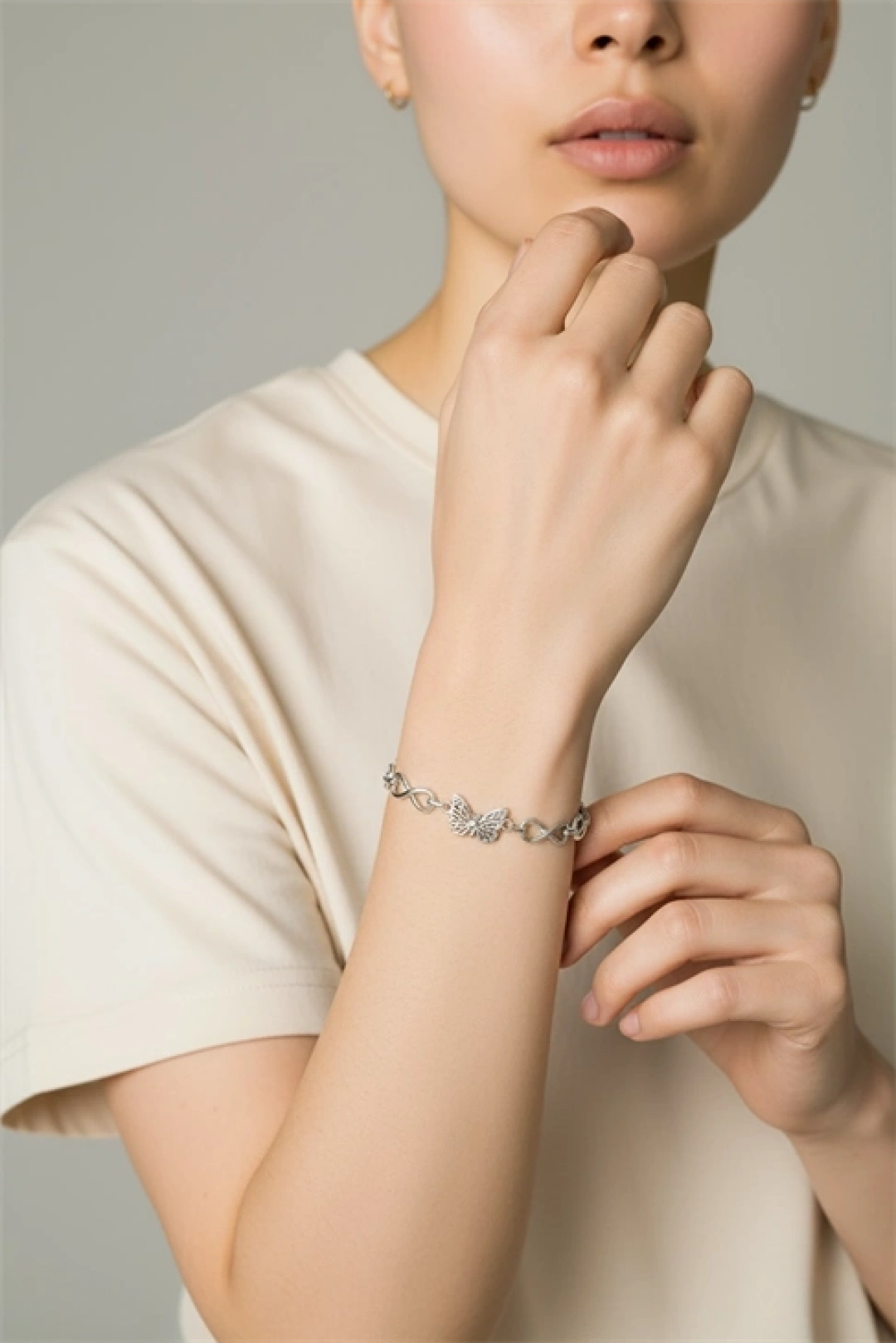 Kelebek Charmlı Sonsuzluk Desenli Zincir Bileklik