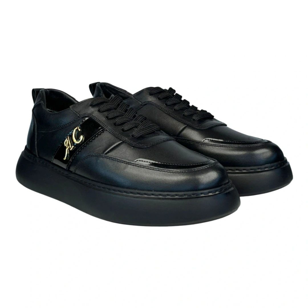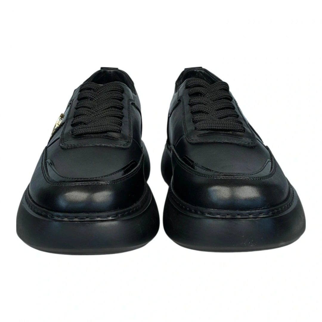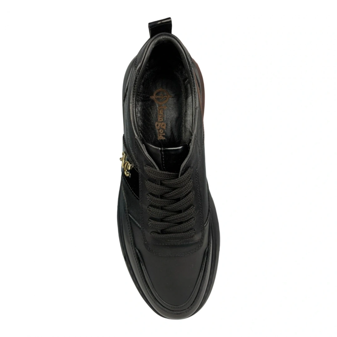 Kişiselleştirilebilir Kalın Ortopedik Tabanlı %100 Deri Sneaker Spor Ayakkabı - Siyah