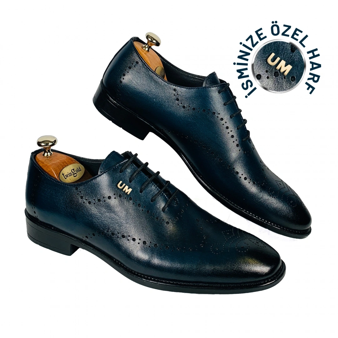 Kişiselleştirilebilir Hakiki Deri Klasik Oxford Erkek Ayakkabı Şıklığı Lacivert