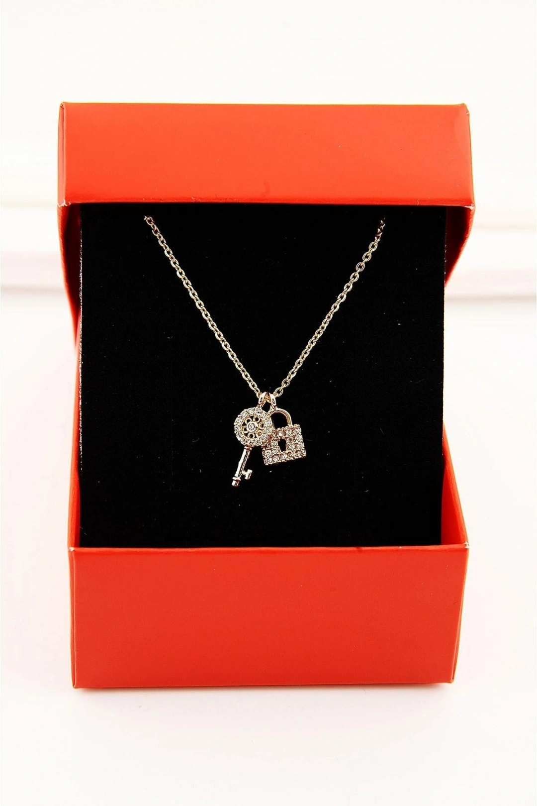 Göz alıcı zirkon taşlarla süslenmiş, her anınıza ışıltı katacak bir aksesuar; Gümüş kaplama malzemesi sayesinde uzun süreli kullanım ve parlaklığını koruma özelliği; Kilit anahtar tasarımıyla hem şıklığı hem de fonksiyonelliği bir arada sunar; Özel kutusuyla gelen bu kolye, hediye olarak da tercih edilebilir;