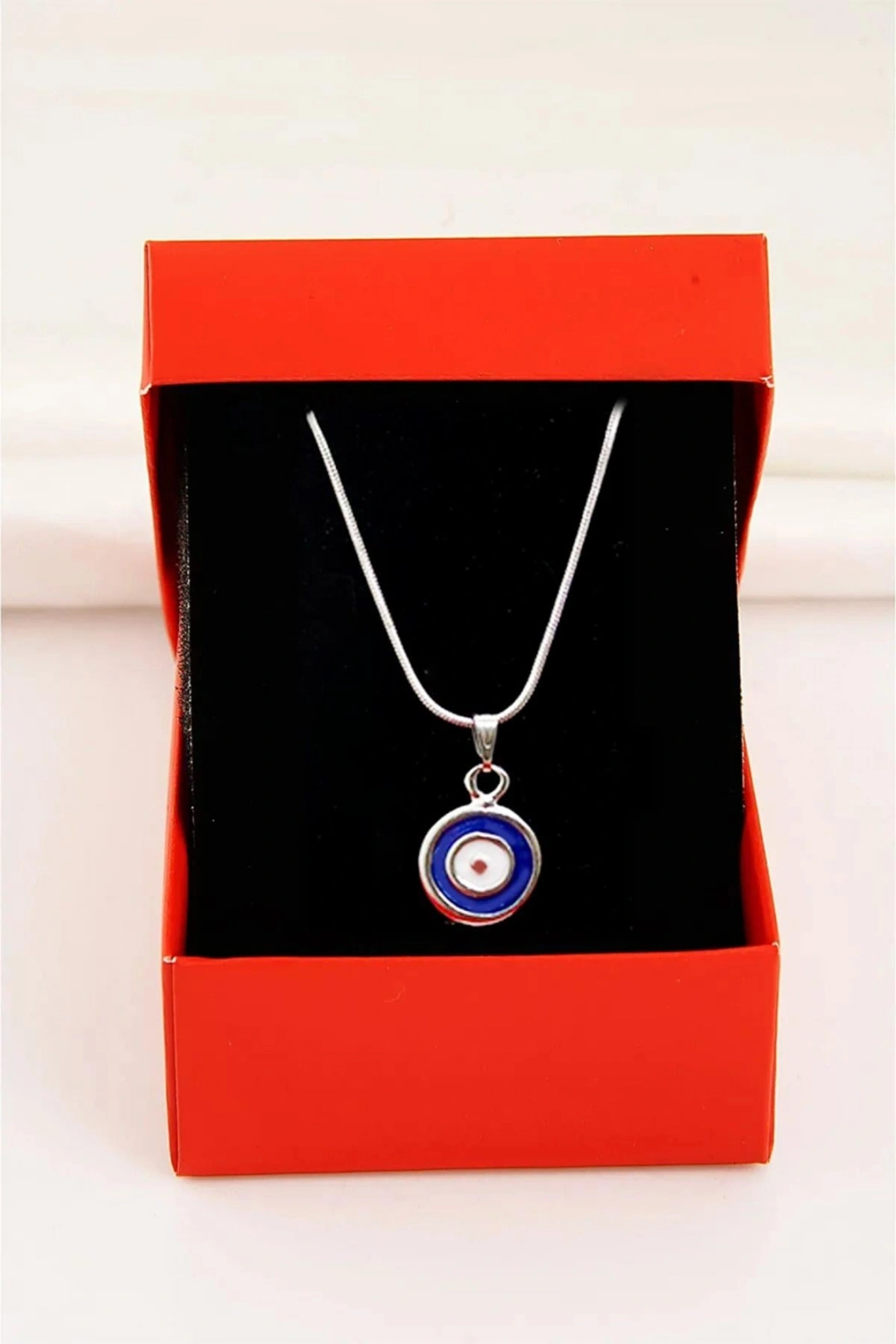 Zarif tasarımıyla dikkat çeken bu kolye, zamak kaplama materyali sayesinde uzun ömürlü kullanım sunar; Göz alıcı nazar tasarımları ile hem şıklığı hem de anlamı bir arada barındırır, özel günlerinizde ve günlük kullanımda ideal bir aksesuar seçeneği olur; Yılan zincir detayı, klasik ve modern çizgileri harmanlayarak her tür kıyafetle uyum sağlar ve stilinizi tamamlar; Kutulu ambalajı sayesinde sevdiklerinize anlamlı bir hediye olarak sunabileceğiniz bu kolye, özel günlerdeki mutluluğunuzu paylaşmanın şık bir yoludur;