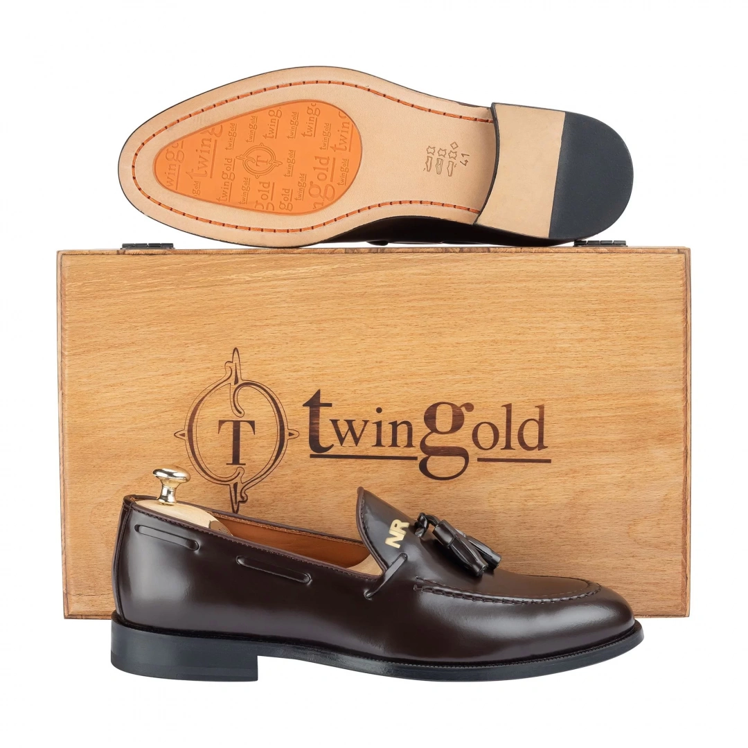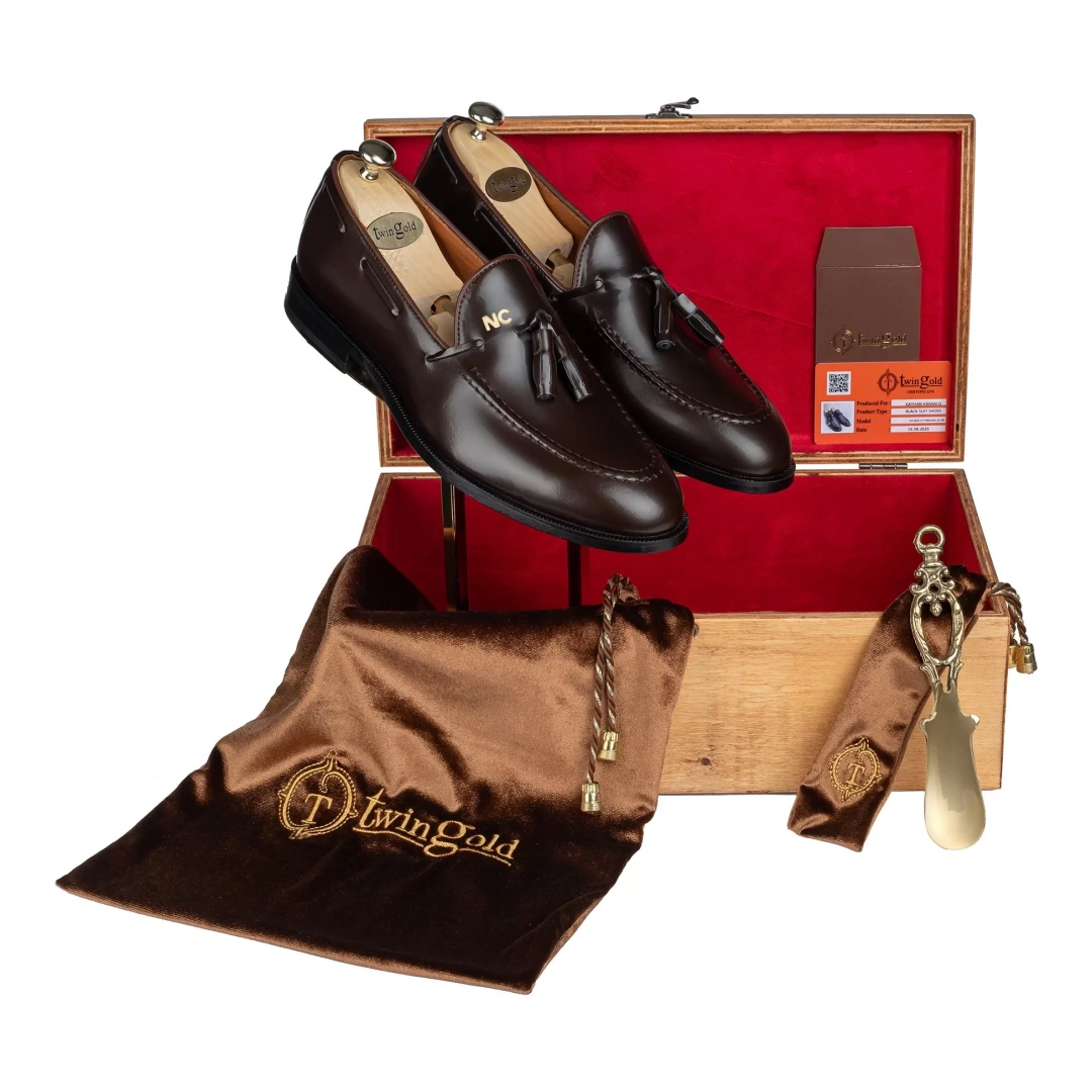 Altın harfli ayakkabılarımız ahşap kutusunda, meşe kalıp, pirinç çekecek, altın sertifikası ve toz torbasıyla birlikte gönderilmektedir.