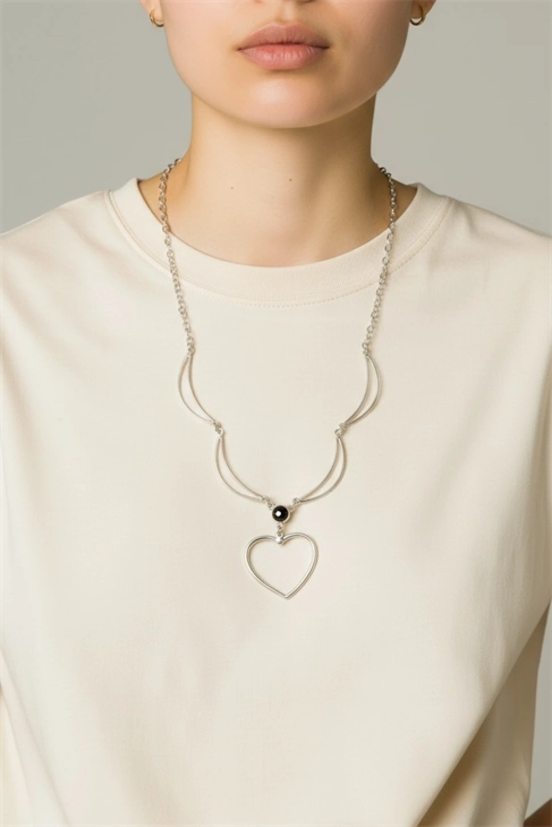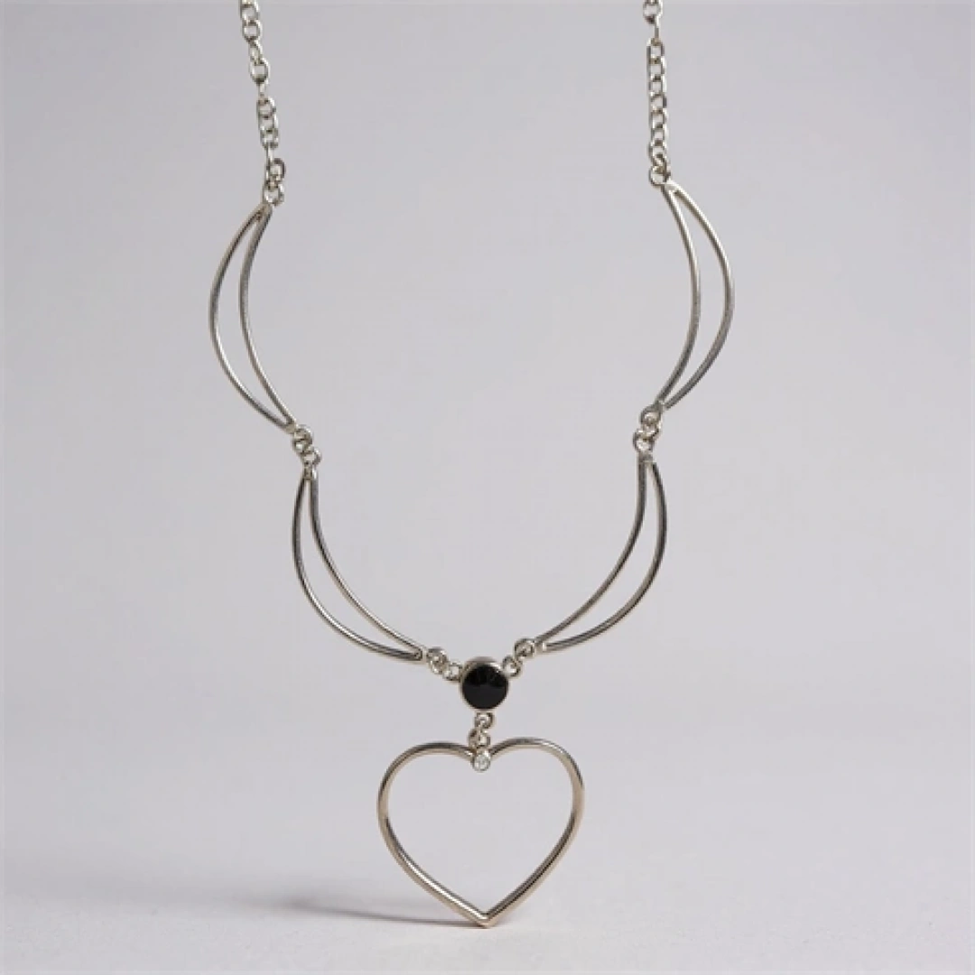 Zamak kaplama malzemesi sayesinde uzun ömürlü ve dayanıklı kullanım sunar; gümüş rengi kaplama ile şık ve göz alıcı bir görünüm kazandırır; siyah taş detayı ile modern ve estetik bir stil ifade eder; Gerdanlık formu, boynunuza zarif bir dokunuş ekler