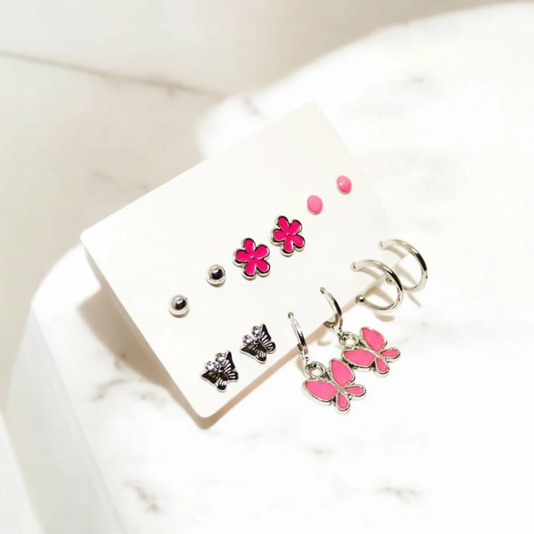 Pembe Kelebek ve Çiçek Tasarımlı Renkli Küpe Seti ; Hediye paketi yapılır ; Hediye notu yazılır ; Ürün temizliğini pamuklu bir bez ile yapabilirsiniz ; Kimyasal maddelerle teması olmaması dahilinde kararma yapmaz ; Anti Alerjiktir cilt de herhangi bir kızarıklık vb.; olumsuz etki oluşturmaz ; İş günleri 24 saat içinde kargoda ; Sevgiliye alınacak hediye ; Anneye alınacak hediye ; Kızıma alınacak hediye ; Notlu Hediye Paketi ; ;
