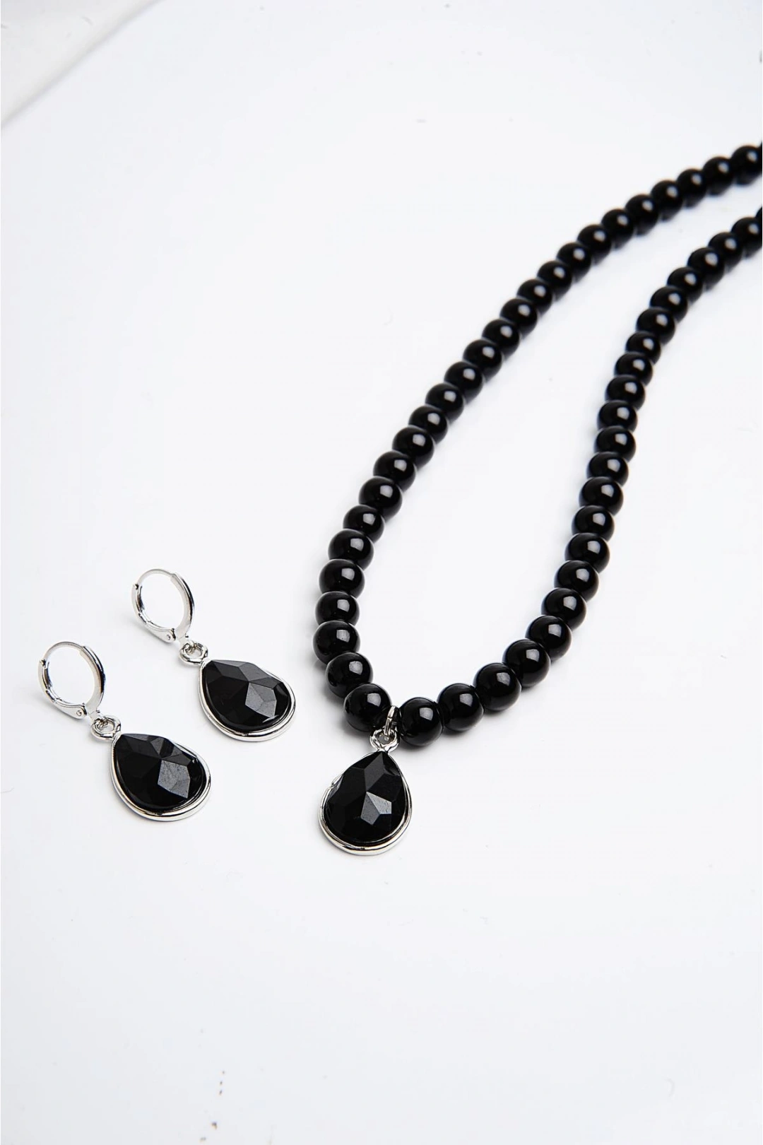 Zarif siyah incilerle süslenmiş, göz alıcı bir görünüm sunan kolye ve küpe takımı; Zirkon kaplama malzemesi sayesinde uzun süreli parlaklığını korur ve şıklığınızı tamamlar; İnci detayları ile klasik ve zamansız bir tarz yaratırken, her türlü kıyafetle uyum sağlar;