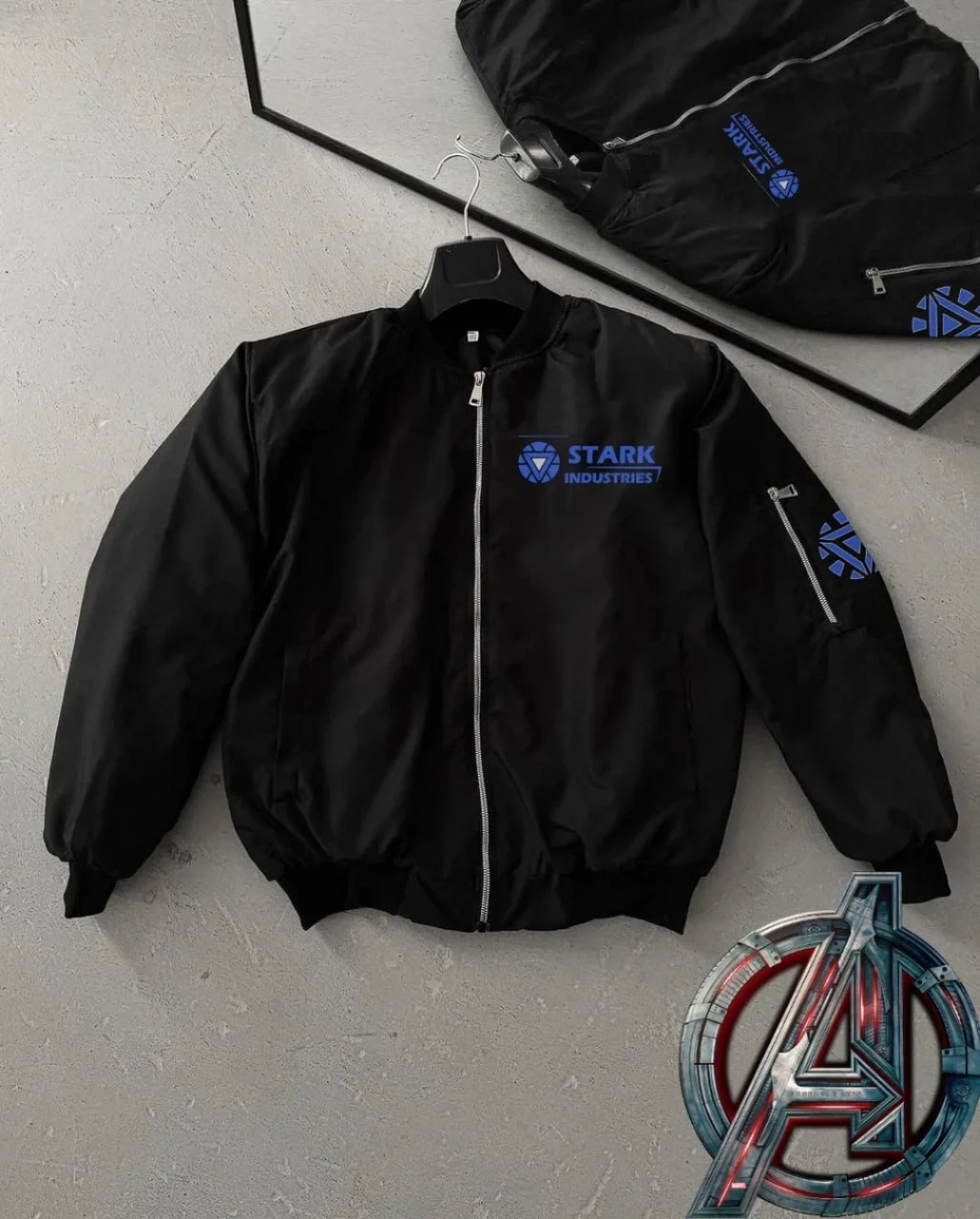 Unisex Uzun Kol Baskılı Bomber Ceket - Siyah
