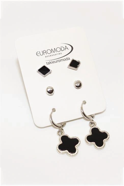 Zarif sallantılı tasarımı ile göz alıcı bir görünüm sunar; Zamak kaplama materyali sayesinde uzun ömürlü kullanım ve parlak bir parlaklık sağlar; Üçlü set halinde gelen bu küpeler, farklı kombinlerinizde kolayca uyum sağlar;