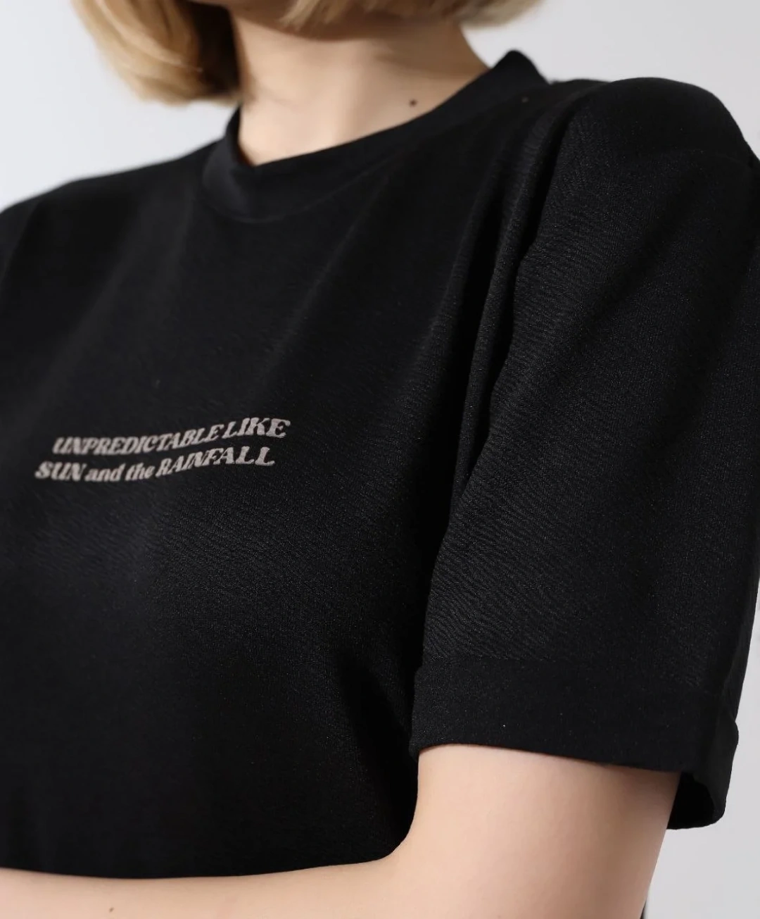 Kadın Bisiklet Yaka Kısa Kollu Baskılı T-shirt - Siyah