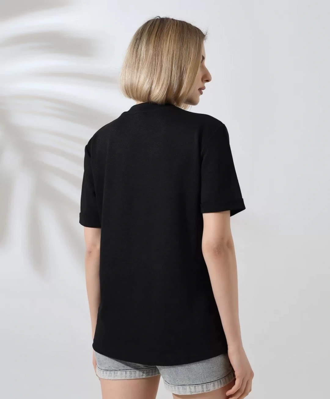 AICG Ön Arka Baskılı Bisiklet Yaka Kadın Oversize Bisiklet Yaka T-shirt - Siyah