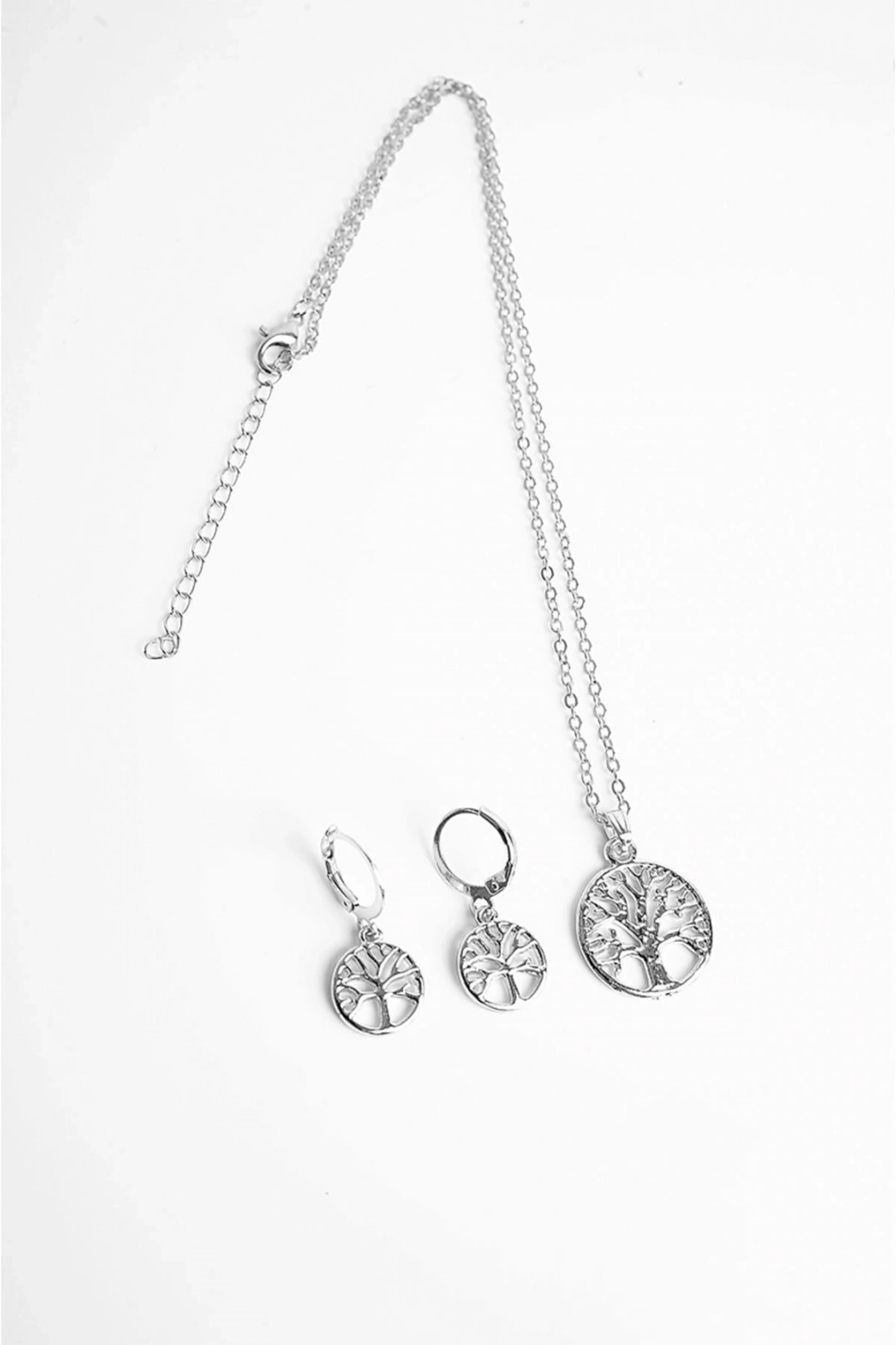 Zarif tasarımıyla dikkat çeken yaşam ağacı motifli kolye ve küpe seti, gümüş ve altın rengi kaplamalarıyla göz alıcı bir şıklık sunar; Zirkon taş detaylarıyla zenginleştirilmiş bu takı seti, her türlü özel gün ve günlük kullanım için idealdir; Zirkon taşların ışıltısı, altın ve gümüş kaplamaların parlaklığıyla birleşerek eşsiz bir estetik oluşturur; Zirkon taşların ışıltısı, altın ve gümüş kaplamaların parlaklığıyla birleşerek eşsiz bir estetik oluşturur;