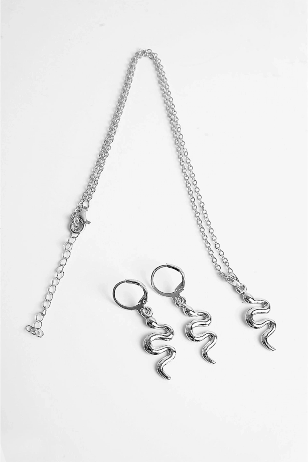 Zarif yılan tasarımlı kolye ve küpe takımı, şıklığınızı tamamlayacak altın ve gümüş renklerdeki zarafetiyle dikkat çeker; Zamak kaplama materyali sayesinde uzun süreli kullanım ve parlaklığını koruma özelliği sunar; Hem günlük kullanımda hem de özel günlerde tercih edebileceğiniz bu takım, stilinizi öne çıkarır;