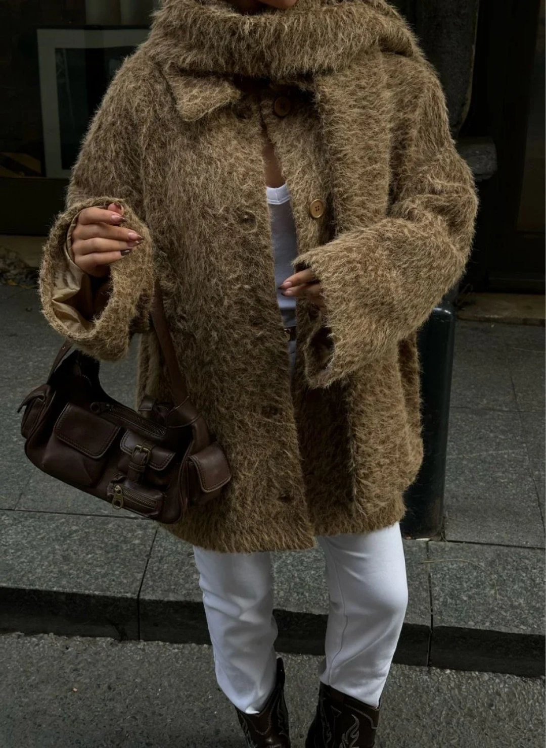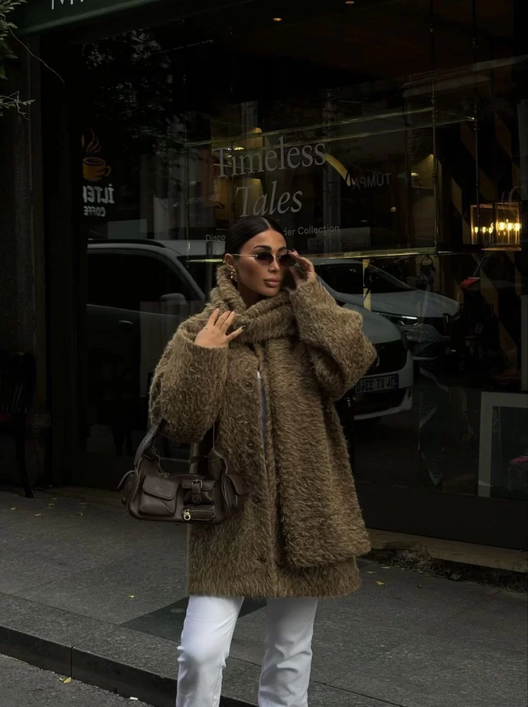 Yün Cıkartılabilen Atkılı ,Kaban İkili Takım- Kahve