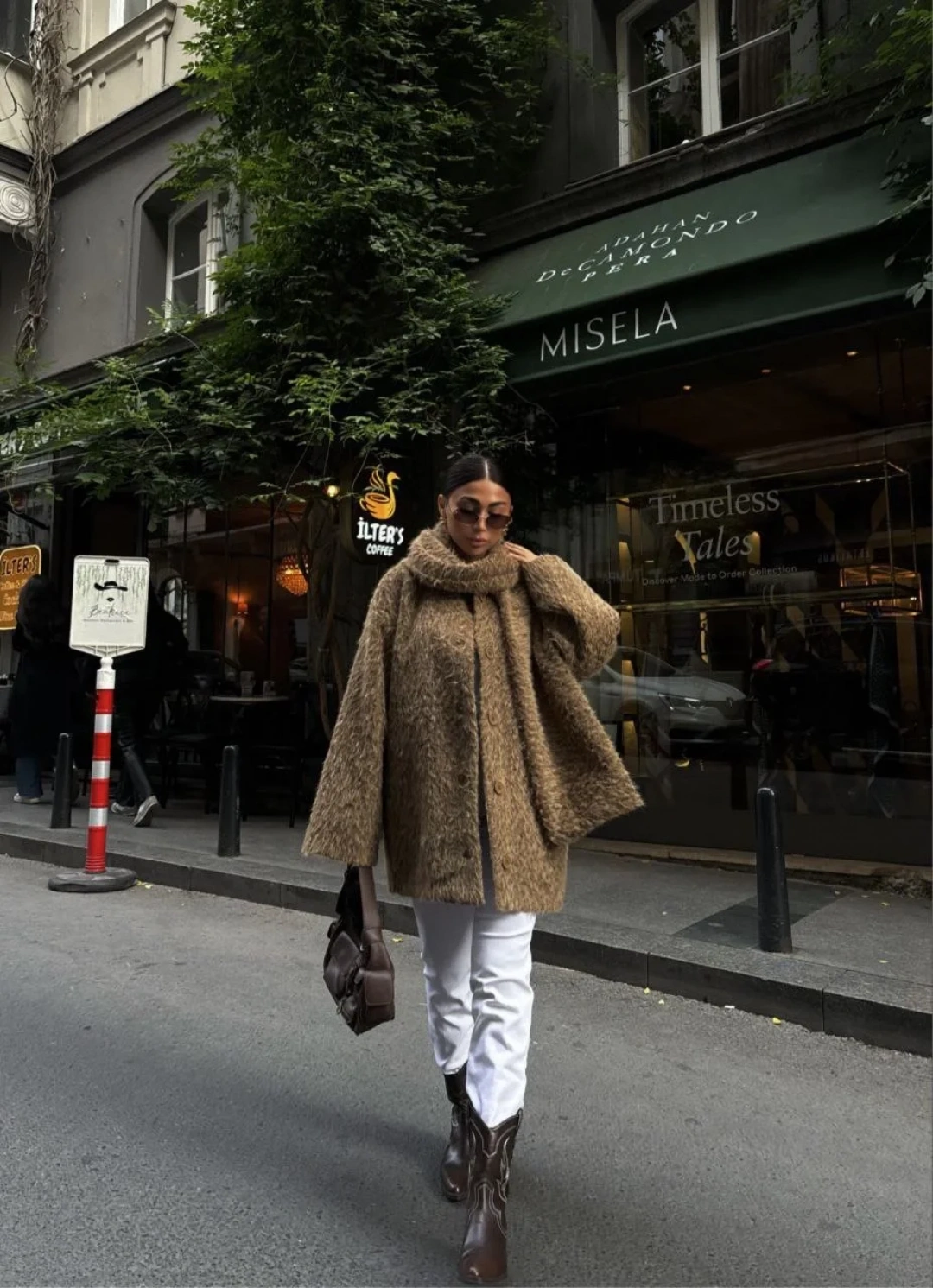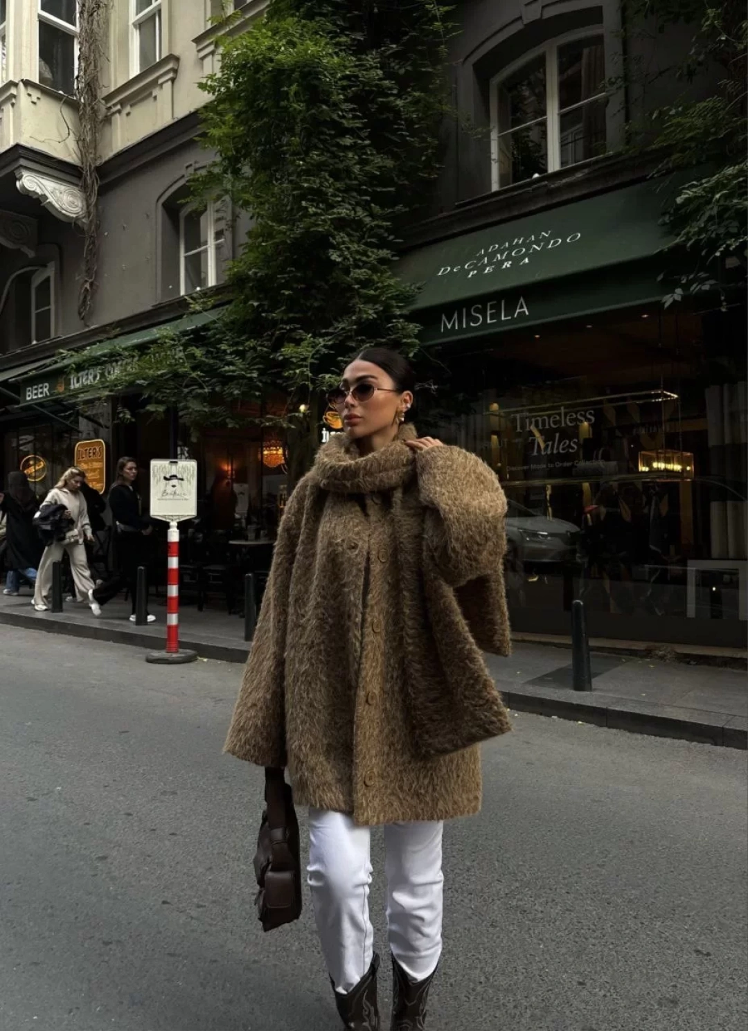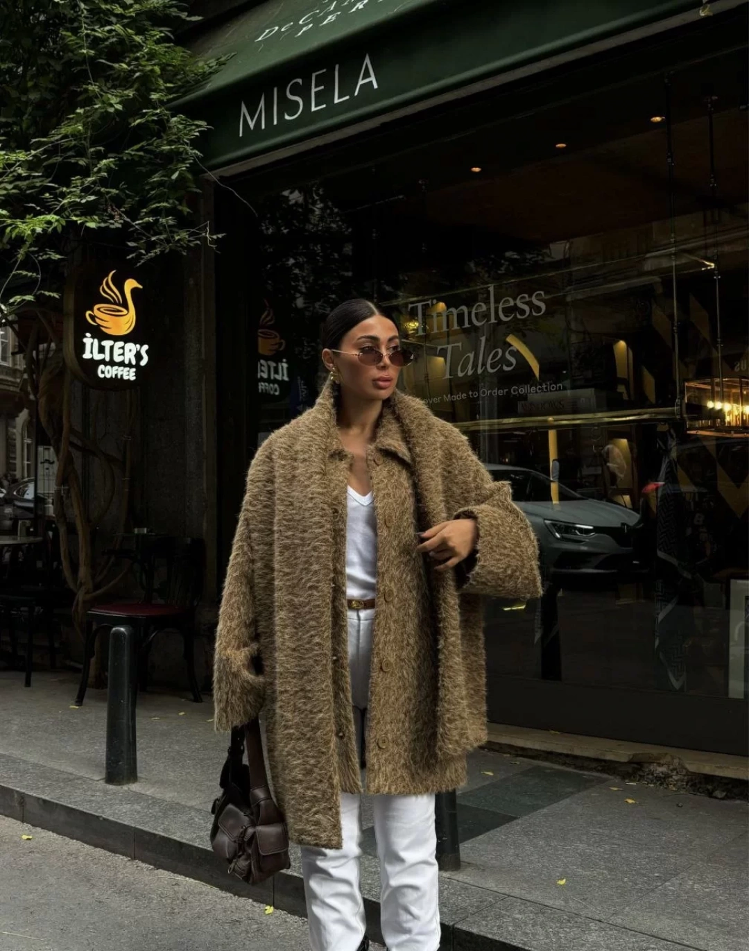 Cıt Cıt Detaylı Peluş Mont Ceket - Beyaz